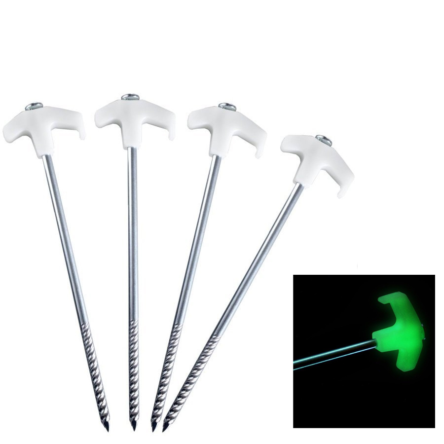 Stubai – EINSCHRAUBHAKEN ZELTHERING, 4 Stk. Einschraubhaken / Zeltheringe mit fluoreszierendem Kopf (Nachtsichtbarkeit) 4er Pack Länge: 25cm Durchmesser: 7mm Robuste Einschraubhaken zur Befestigung von Zelten, Planen, Boten, etc. In harten und weichen Böden verwendbar. Durch den speziellen Schaft lässt sich der Haken vor allem in harte Böden leicht eindrehen. Der fluoreszierende Kopf gewährleistet eine gute Nachtsichtbarkeit der Fixpunkte (und den daran befestigten Leinen). Art. 167378003E