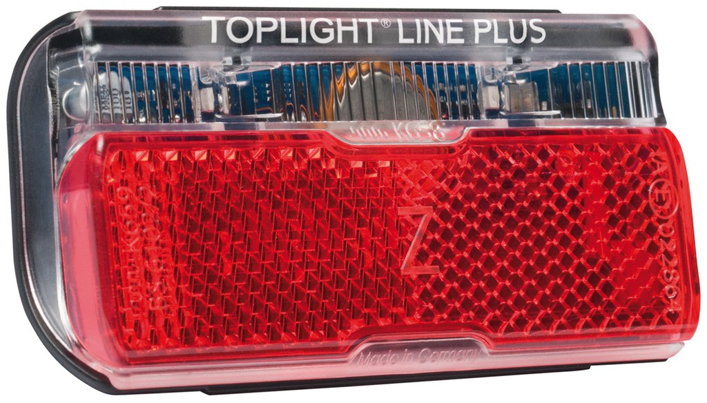 B&M Rücklicht Toplight Line brake plus• Rücklicht mit Bremslichtfunktion• ein im Rücklicht integrierter Prozessor interpretiert ein Signal vom Nabendynamo, Sinkt die Geschwindigkeit plötzlich und signifikant, leuchtet das Rücklicht deutlich heller- wie ein Bremslicht.