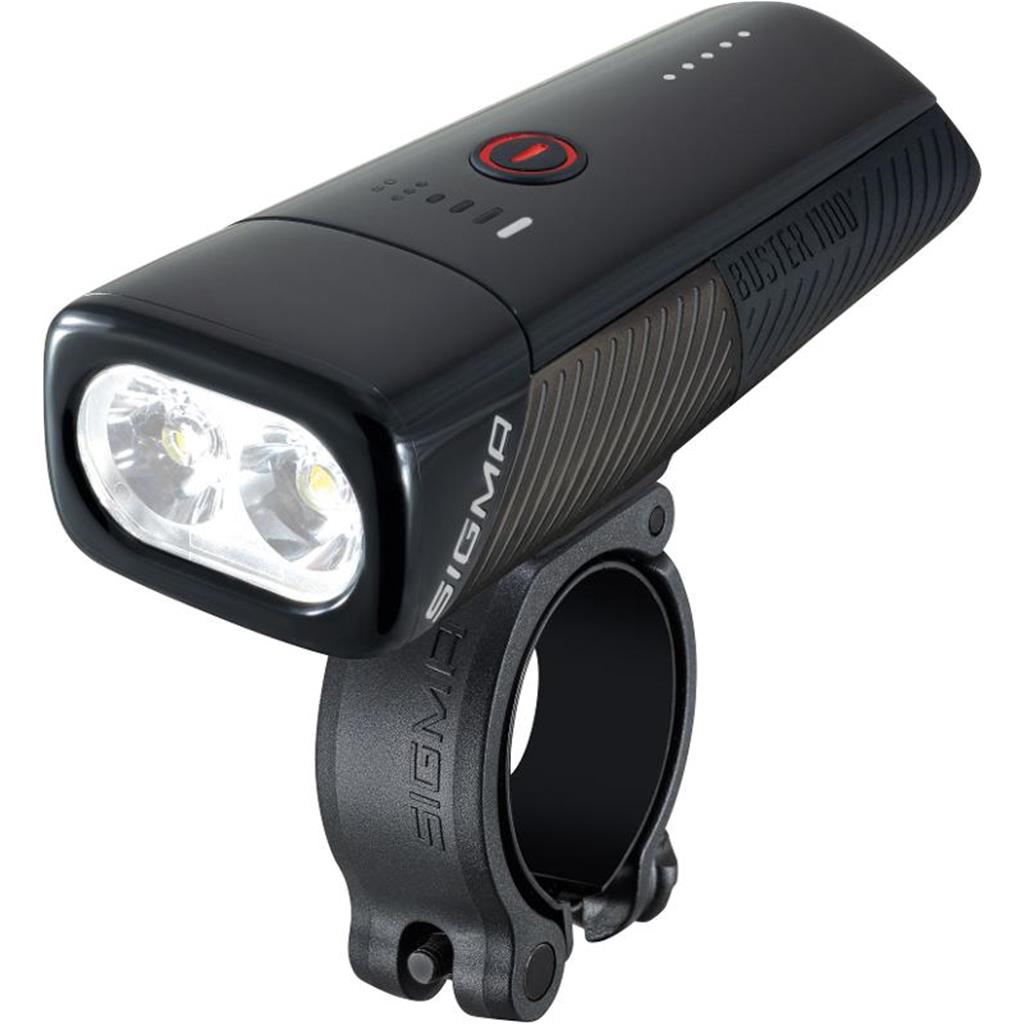 Mit bis zu 1100 Lumen und 165 m Leuchtweite sorgt die BUSTER 1100 für perfekt ausgeleuchtete Trails. Bei sechs Modi und einer Brenndauer von bis zu 50 Stunden kann kein Nightride lang genug sein. Den aktuellen Akkustatus zeigt ein kurzer Knopfdruck an. Praktisch und gleichzeitig umweltfreundlich ist die USB-C Aufladefunktion.FEATURES:- Maximale Lichtmenge: 1100 Lumen- Leuchtweite: 165 m (Basis ANSI Nema FL1)- 6 Leuchtmodi: High (1100 lm); Mid (800 lm); Low (400 lm); Eco (150 lm); Night Flashing (800/400 lm); Day Flashing (200 lm)- Leuchtdauer: 2 h (High); 2,5 h (Mid); 5 h (Low); 16 h (Eco); 5 h (Night Flashing); 50 h (Day Flashing)- Sechs Modi-Display-Anzeige- Fünf voreingestellte Modi-Profile + Memory-Modus- SIGMA Lichtleiter für hervorragende seitliche Sichtbarkeit- Ladezeit: 2,5 h- Einschaltschutz (Doppelklick für ON)- Spritzwassergeschützt nach IPX4- Werkzeugfreie Montage- USB-C Schnellladefunktion- Sechsstufiger Akkuindikator- Fünfstufiger Ladeindikator- Kurzer Tastendruck zeigt Akkustatus- Aufladen während des Betriebs möglich- Gewicht: 215 g (inkl. Halterung)- OSRAM LEDIM LIEFERUMFANG ENTHALTEN:- USB-C Kabel Quick Charger