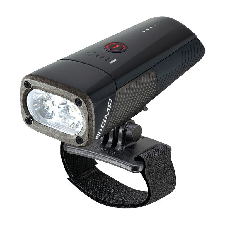 SIGMA LED-Helmleuchte Buster 1600 HLFeatures & Funktionen:• maximale Lichtmenge: 1600 Lumen• Leuchtweite: 205m (Basis ANSI Nema FL1)• 6 Leuchtmodi: High (≤1600 lm),Mid (≤1000 lm), Low (≤500 lm), Eco (≤150 lm) Night Flashing (≤800/400 lm), Day Flashing (≤200 lm)• Leuchtdauer: ≤1,75 h im High-Modus, ≤2,8 h im Mid-Modus, ≤ 6,8 h im Low-Modus, ≤ 18 h im Eco-Modus, ≤ 5h im Night Flashing-Modus, ≤ 50 h im Day Flashing-Modus• fünf voreingestellte Modi-Profile + Memory-Modus • Ladezeit: 3 h• Ladeindikator: fünfstufiger Ladeindikator, fünfstufiger Akkuindikator• integrierte Ladefunktion: Aufladen während des Betriebs möglich, USB-C Ladefunktion• Leuchtmittel: Osram LED• Einschaltschutz (Doppelklick für AN)• spritzwassergeschützt nach IPX4• Light Guide für sehr gute seitliche Sichtbarkeit• kurzer Tastendruck zeigt Akkustatus• verstellbare Halterung 360°: 3D adjustable Screwbracket, QR• werkzeugfreie Montage• Gewicht: 215g (inkl. Halterung)