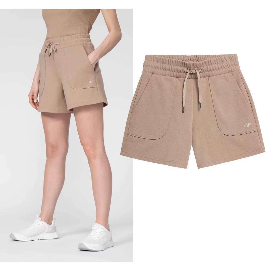Farbe:       beigeProduktbeschreibung: Die Damenshorts H4L22 SKDD010 4F bieten Komfort bei jeder Aktivität. Sweatshorts sind bequem im Alltag und beim Sport. Der elastische Bund sorgt für eine gute Passform der Shorts am Körper. Die Shorts haben etwas weiter geschnittene Beine , sodass sie die Bewegungsfreiheit nicht einschränken. Sie genießen bei jedem Schritt hohe Freiheit und Komfort. Durch den minimalistischen Schnitt und die schlichten Farben passen die Shorts zu einer Vielzahl von T-Shirts. Was zeichnet dieses Modell aus? gute Passform am Körper,angenehm anzufassender Stoff,minimalistisches Design. Parameter: Material: 65 % Polyester, 35 % BaumwolleGrammatur: 300 g/m²Elastischer BundRiemenverstellungzwei Seitentaschen Info:Die Darstellung der realen Farbe auf ihrem Bildschirm ist sehr schwierig.Diese kann je nach Licht beim fotografieren, sowie durch die individuelle Bildschirmeinstellung unterschiedlich erscheinen. Verkauf solange der Vorrat reicht