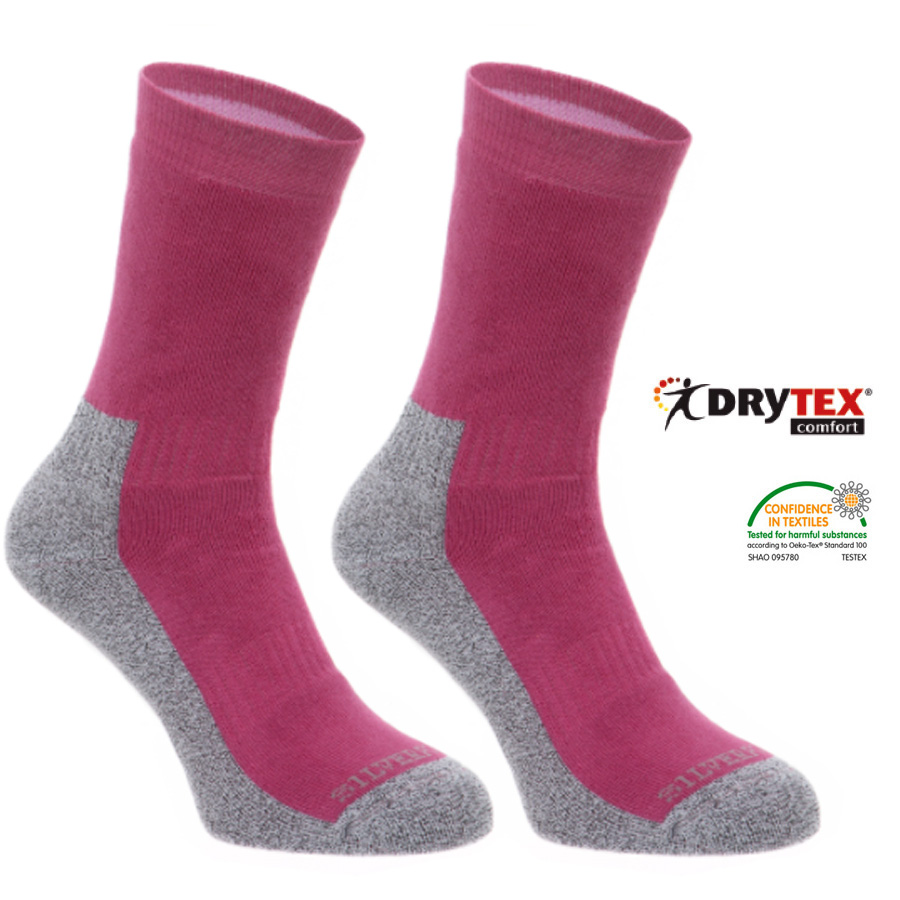 Produkt: Silverpoint – DRYTEX Comfort Hiker – TrekkingsockenGröße: einfach Größe auswählen:    S (36-38)    M (39-42)    L (43-46)      XL (47-51)Info: es werden 2 Socken geliefert – 1 Paar Farbe: rosa grau Beschreibung:Silverpoint Comfort Hiker Outdoor Socken von höchster Qualität mit Drytex Funktion, die trockene Haut gewährleistet, und eine hervorragende Wärmedämmung und Feuchtigkeitsentfernung bietet.Dieser Allround Socken aus Drytex und Baumwolle ist für fortgeschrittene Wanderer entwickelt worden. Du wirst begeistert sein… Egal ob beim Walking, Trekking, Spazierengehen, …  DRYTEX ist zudem antibakteriell. Die Faser Drytex® reduziert das Einlaufen. Ferse und Zehen verstärkt. Elastisch um Fuß und Knöchel für perfekten Sitz. 35% Drytex , 10% Polyester, 35% Baumwolle, 15% Polyamid, 5% Elasthan Größe: einfach Größe auswählen:    S (36-38)    M (39-42)    L (43-46)      XL (47-51)
