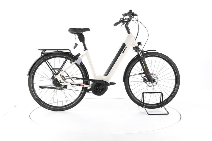 Dieses refurbished Kettler E-Traveler Gold P5RT City E-Bike Tiefeinsteiger 2024 mit einer 50 Rahmengröße ist ideal für Körpergrößen zwischen 160 und 170. Ausgestattet mit einem leistungsstarken Bosch PowerTube Akku, hat es nur 680 km auf dem Tacho. Unsere Mechaniker haben es 100 % geprüft und gewartet, um die volle Funktionalität zu gewährleisten. Optische Gebrauchsspuren können vorhanden sein, beeinträchtigen die Funktion jedoch nicht. Sie erhalten eine 2-Jahres-Garantie auf Motor und Akku.