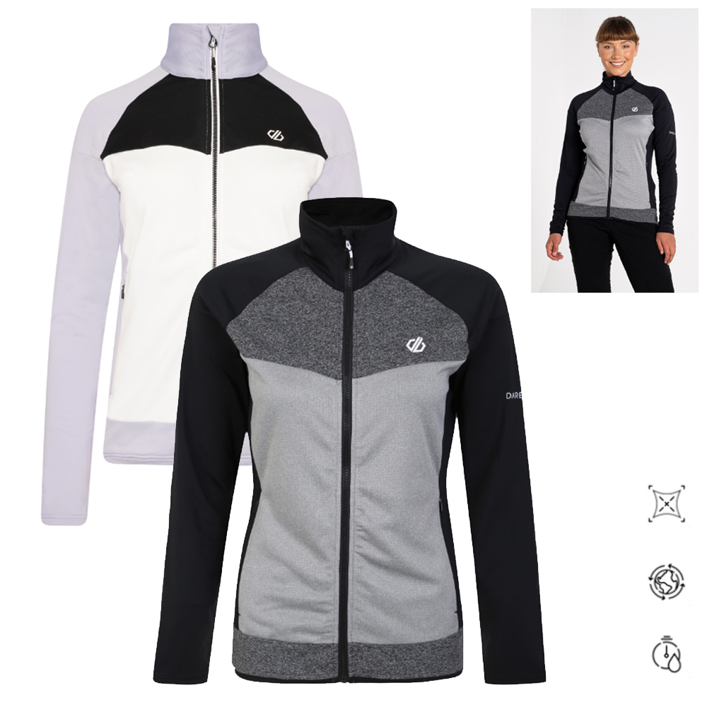 Der Dare2b Elation II Core Stretch-Midlayer.Aus recyceltem Stretchgewebe mit warmer Fütterung für Komfort von morgens bis abends, wenn man ihn am meisten braucht.Besonders leicht und einfach im Rucksack zu verstauen, wenn die Temperaturen steigen.Das schnell trocknende Gewebe hält Sie den ganzen Tag frisch.Verstauen Sie Ihre wichtigsten Dinge in den Reißverschlusstaschen und schon sind Sie bereit für den Weg, der vor Ihnen liegt.Fühlen Sie sich das ganze Jahr wie zu Hause ob beim Indoor oder Outdoor Sport.Für die Herstellung dieses Dare2b Produkts wurden etwa 16 Flaschen (500 ml) recycelt.Ilus Core – recyceltes, innen warm gepolstertes Stretchgewebe mit strukturierten GitterstoffeinsätzenStretch Gewebe – für optimaleDurchgehender ReißverschlussKomfortabler, hoher und anliegender Kragen2 tief angesetzte RV-TaschenStretchbündchen an Ärmeln und SaumWash & Wear – Pflegeleichte und schnelltrocknende Materialien.Material: 95% Polyester, 5% ElastanGrößenauswahl: Das Model trägt Größe Small (36)Farben können auf Ihrem Bildschirm leicht vom realen Produkt abweichen, bedingt durch Lichtverhältnisse und individuelle Bildschirmeinstellungen.