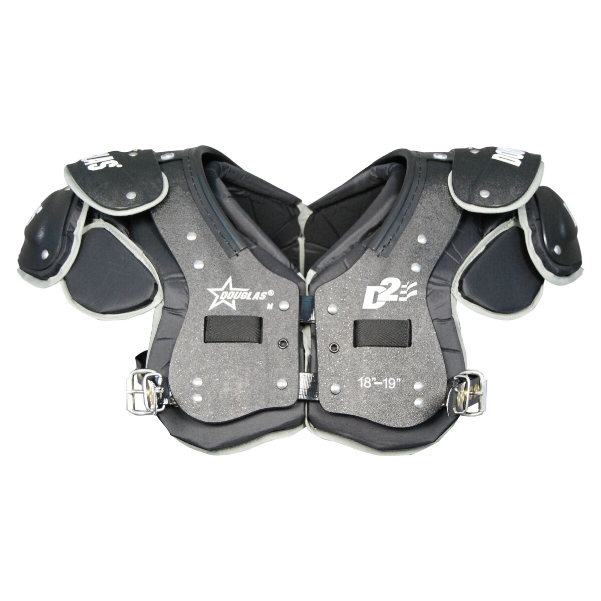 Preiswertes Einstiegs-Schulterpad mit gutem Schutz Das Douglas Destroyer-2 Q22 Schulterpad mit dem sehr guten Air-Management-Schutzsystem ist für die Positionen von Quarterbacks, Wide Receivern, Running Backs, Defensive Backs und Kickers / Punters konzipiert worden. Das Air-Management-System mit offenzelligem Schaumstoff und stromlinienförmigem Kunststoff trägt zusammen mit dem CANTILEVERED-Design dazu bei, die Kontaktenergie auf die Brust und den Rücken des Players zu verteilen. Das leichte und stromlinienförmige Design ist sehr gut für Spieler die einen größeren Bewegungsspielraum benötigen. Mit kleineren Schulterklappen schwenkbarer Front gibt es dem Spieler mehr Flexibilität beim Werfen und Passen. Highlights: für QB, WR, RB, DB, KP mit Air-Managment-Schutzsystem Kontaktenergie wird verteilt leichtes, stromlinienförmiges Design kleinere Schulterklappen Lieferumfang: 1 Stück Bitte beim Ausmessen der Größe das Bild beachten! Größe S M L XL 2XL 3XL Schulter (in Zoll) 17-18 18-19 19-20 20-21 21-22 22-23 Brust (in Zoll) 38-40 40-42 42-44 44-46 46-48 48-50 Schulter (in cm) 46-49 49-51 51-53 53-56 56-59 59-62  Brust (in cm) 101-106 106-111 111-116 116-121 121-126 126-131