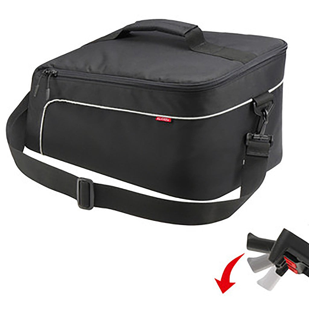 Rackpack Light Uniklip 2 sw Schlanke, aber dennoch üppig ausgestattete Rackpack mit geräumigem, gepolstertem Hauptfach und Innentasche. Eine Trinkflasche kann in einer Außentasche verstaut und mit einem Kordelzug gesichert werden. Ausgerüstet mit Griff, Tragegurt, Reflektor und Regenhaube.