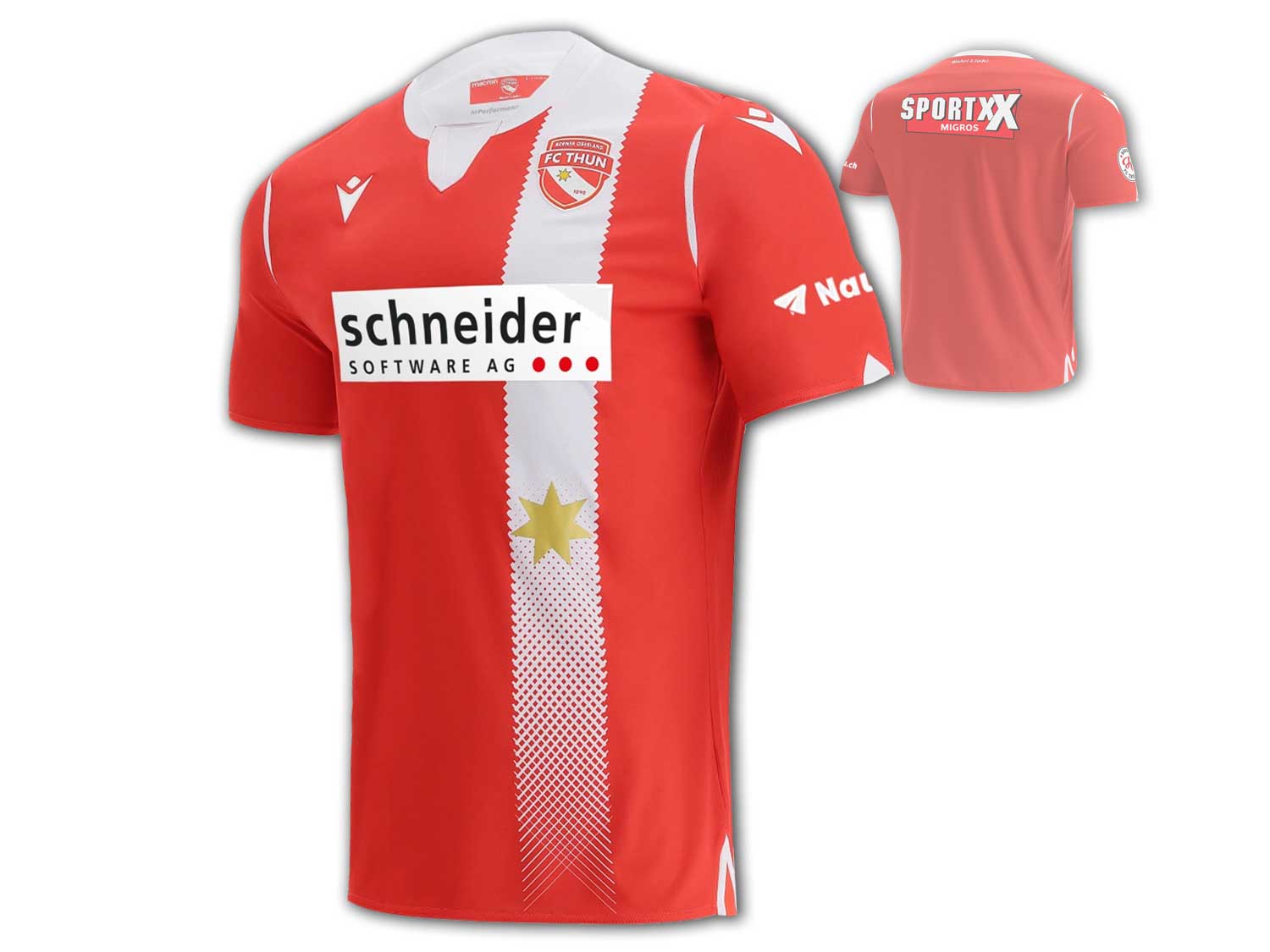 Funktionelles und hochwertiges FC Thun Trikot in rot weiß zu den Heimspielen der Saison 2021/22 von Macron. THU Home Shirt des Fußballvereins aus der Schweiz, welches hochwertig mit MPerformanceSystem Funktionsmaterial verarbeitet ist, für ein erhöhten Feuchtigkeitstransport und besseren Temperaturregulierung. Das Fan Jersey Fußballclub Thun 1898 kommt klassisch daher und hat auf der Brust ein aufgenähten FC Thun Wappen, wie auch ein aufgesticktes Macron Logo. Material: 100% Polyester. Farbe: RED / WHITE.