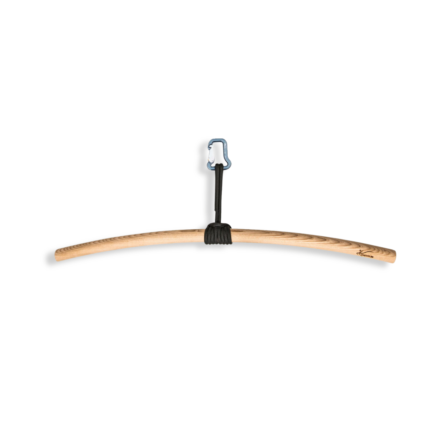 Holz Design-Klimmzugstange, gebogen, in verschiedenen Größen und Varianten, Esche, naturbelassenDu kannst zwischen verschiedenen Varianten wählen: die Variante nur mit Seil, oder die Variante mit Seil UND Karabiner.Deine Rückenmuskulatur und Körperbalance werden durch Klimmzüge mit dieser ergonomisch geformten Esche-Klimmzugstange trainiert.Sie ist mit ihrem schlichten aber eleganten Design eine optische Bereicherung für dein Zuhause, jedes Büro, Fitness- oder Wellnessstudio und passt optimal ins Konzept einer anspruchsvollen Praxis für Physiotherapie.Jede einzelne eaglefit Klimmzugstange entspricht unseren Qualitätsansprüchen und ist ein Naturprodukt handmade in Germany.Besonderheiten:Ergonomisch geformte und naturbelassene freihängende Klimmzugstange aus unbehandelter Esche mit 60 oder 100 cm Breite und Durchmesser 38 mmDurch die Breite hast du ein platzsparendes und preisgünstiges Gerät, mit dem du trotzdem sehr variabel trainieren kannstBelastbar bis 100 kg142 cm langes Faserseil (ø 8mm), welches mit einem 4-fachen Prusik-Klemmknoten an der Klimmzugstange sicher befestigt ist.Trainingseffekte:Durch die Befestigung an einem zentralen Punkt, muss mit beiden Armen exakt die gleiche Kraft aufgebracht werden – perfektes BALANCE Training und idealer Ausgleich bei einseitigen Sportarten wie Tennis, Golf, etc.Die Stange ermöglicht dir je nach gewählter Variante ein sehr variables Training.Durch diese gebogene Ausführung ist jede Griffposition optimal zur Körpermitte ausgerichtet und schont die Handgelenke.Verwendete Materialien, Zubehör & HandhabungEdelholz EscheDas Edelholz Esche wird wegen seiner Zähigkeit und Biegefestigkeit schon seit sehr langer Zeit für die Herstellung von Sportgeräten wie z. B. Barren, Sprossenwand verwendet.Das Holz ist einfach zu pflegen. Es genügt ein leicht feuchtes Baumwolltuch für die Reinigung.Durch unterschiedliche Lichteinwirkung kann sich die Farbe des Holzes etwas verändern.HandhabungBefestigungsidee für sehr hohe Räume ( > 350 cm) oder die Verwendung an einem Baum (nicht im Lieferumfang enthalten): eaglefit 4m Schlinge für Balken / ÄsteBefestigung an einer Deckenhalterung (nicht im Lieferumfang): Die Seilenden mit einem Karabiner in eine Deckenhalterung einhängen.Wer bereits einen Sling-Trainer von eaglefit besitzt, findet mit dieser Klimmzugstange eine optimale Erweiterung:Einfach die Klimmzugstange mit Seil bestellen und mit den Seilenden in den Karabiner des Befestigungsbandes einhängen, richtige Länge individuell einstellen und los geht’s.HerstellungKlimmzugstangen aus energie- und rohstoffschonender ProduktionDas Holz für die Klimmzugstangen stammt aus dem Donauwald oder den Tälern der schwäbischen Alb.Dort gibt es genügend Wasser und Nährstoffe für ein optimales und starkes Wachstum der Eschen, welches für die guten statischen Eigenschaften des Holzes notwendig ist.Auf manchen Standorten entwickelt die Esche einen braunen Kern, was besonders schöne, farbintensive Werkstücke ergibt.Nach dem Fällen der Eschen im Winter werden diese in unserem Nachbarort zu Dielen geschnitten und anschließend zum Trocknen aufgestapelt und abgedeckt. Durch die natürliche Trocknung bleiben die statischen Eigenschaften voll erhalten. Zudem wird keine Energie für die Trocknung verbraucht.Bei dieser Art der Trocknung kann es aufgrund der längeren Lagerung des Holzes durch Sonneneinstrahlung, Wind und Wetter zu leichten Farbveränderungen an der Oberfläche kommen.Bei der Weiterverarbeitung zu Klimmzugstangen kommt es vor, dass nicht alles davon abgetragen wird und ein dunklerer Rand bleibt. Dies ist kein Fehler, sondern Zeichen von verantwortlichem Umgang mit Rohstoffen und Energie.Deine neue Klimmzugstange wird in den ersten Wochen durch die UV- Strahlung nachdunkeln, da das helle bis jetzt geschützte Holz nun auch der Sonne ausgesetzt ist. Neben der „Braunkernigkeit“, einer gleichmäßig nach Jahresringen abgetrennter dunkleren Einfärbung des Kernbereiches, kommt es vor allem im Übergang von Wurzel zu Stamm und vom Stamm zur Krone zu einem Nährstoff- und Mineralstau. Dadurch kann stärkeres Wachstum und ein unregelmäßiges Farbmuster entstehen.Eine andere Wuchsbesonderheit ist das „Verriegeln“. Dabei bildet sich neben der Längsstruktur ein Wellenbild, welches bei Fichte und Ahorn im Musikinstrumentenbau sehr gefragt ist. Weitere Klimmzugstangen aus Holz