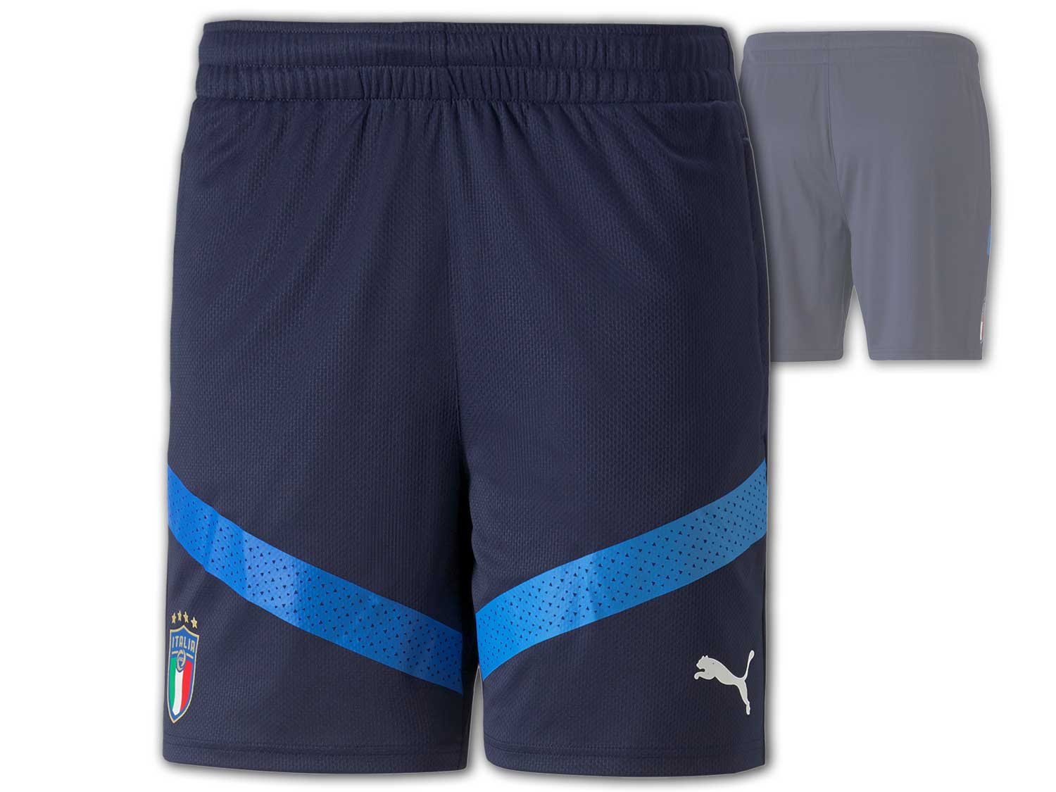 Funktionelle und leichte Italien Training Short in dunkelblau von Puma. Dieses hochwertige FIGC Italia Fußballshort (ohne Innenslip) der italienischen Nationalmannschaft, auch Squadra Azzurra genannt, ist hochwertig mit Puma dryCell Funktionsmaterial für angenehmen Tragekomfort und optimalen Feuchtigkeitstransport verarbeitet. Must have für jeden Fan der Azzurri. Aufgedrucktes FIGC Wappen und Puma Logo auf der Front. Material: 100% Polyester; Farbe: PEACOAT / IGNITE BLUE.