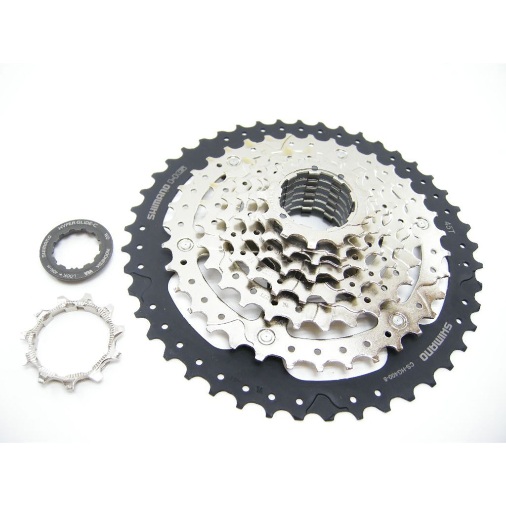 Kassettenkranz HG400 8f.11-45Z – Gruppe: ACERA – Modell: CS-HG400-8 – Typ: Hyperglide – Schaltstufen hinten: 8 – Kompatible Kette: IG/HG – Abstufung: 11-13-15-18-22-27-35-45 Zähne – Freilauftyp: HG-Verzahnung M