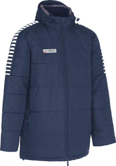 Material: 100% beschichtetes Nylon. Futter aus 100% Polyester. Eigenschaften: Ideal für Trainer und Auswechselspieler. Wind- und wasserabweisend. Bietet Wärme durch dickes Innenfutter und Fleece im Innenkragen und hinteren Jackenabschluss. Bund an den Ärmeln. Gummizug mit Schnellverschluss an Kapuze und Jackenabschluss zum individuellen Verstellen. Jeweils zwei Innen- und Außentaschen mit Reißverschluss. <p> – Ideal für Trainer und Auswechselspieler. <br /> – Wind- und wasserabweisend. <br /> – Bietet Wärme durch dickes Innenfutter und Fleece im Innenkragen und hinteren Jackenabschluss. Bund an den Ärmeln. <br /> – Gummizug mit Schnellverschluss an Kapuze und Jackenabschluss zum individuellen Verstellen. <br /> – Jeweils zwei Innen- und Außentaschen mit Reißverschluss.</p>