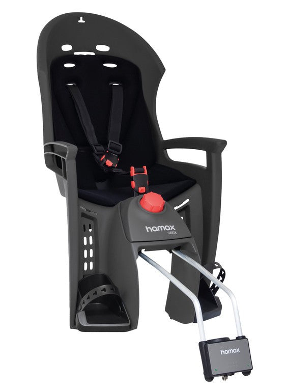HAMAX Kindersitz Siesta • verstellbare Sitzposition (20°)• Helmaussparung für optimalen Komfort beim Tragen eines Helmes• 3-Punkt-Sicherheitsgurt mit zusätzlicher Brustschnalle, um das Kind sicher und praktisch im Sitz zu sichern• Sicherheitsgurt und Fußstützen verstellbar• sichere und einfache Montage• für Kinder ab 9 Monaten bis zu einem Gewicht von 22 kg• zur Befestigung an Fahrrädern mit und ohne Gepäckträger• Rahmen Durchmesser 28-40mm• Montagehalterung abschließbar
