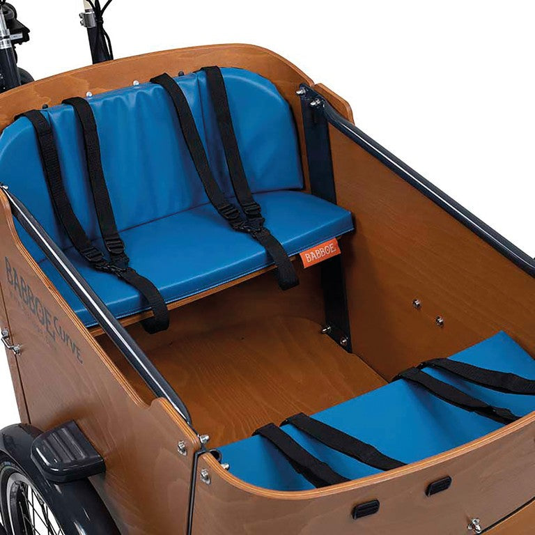 Babboe Lastenrad Kissenset • geeignet für Babboe Lastenfahrräder Curve• geeignetes Alter: 18+ Monate• Sitz- und Rückenkissen miteinander verbunden• extra loses Kissen für zweite Bank• Maße: 22 x 23 x 56 cm (BxHxL)• Material: Kunstleder• inkl. Montagematerial