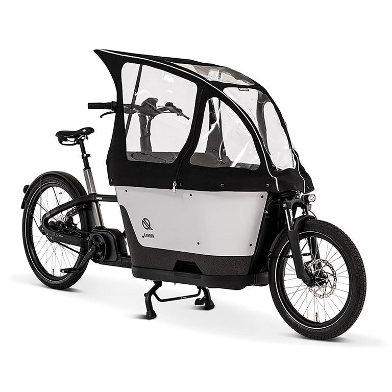 CARQON Regenverdeck Cruise• geeignet für Lastenfahrrad Carqon Cruise• aufrollbare Fenster • Material: Nylon und wasserabweisende PVC-Beschichtung • inkl. Verdeckgestänge, Montagematerial