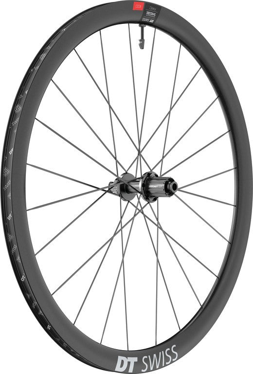 DT SWISS HR-Laufrad ARC 1100 Dicut 38 DBMit dem ARC 1100 DICUT 38 stellt DT Swiss ein neues Laufrad vor, welches für die härtesten Bergetappen auf der Straße entwickelt wurde. Mit einem neu entwickelten Carbon-Layup und einer Felgenhöhe von 38 mm ist dieses Laufrad nicht nur das leichteste der ARC-Linie, sondern verspricht dank der sorgfältigen Aero-Optimierung auch einen rasanten Aufstieg auf die nächste Passhöhe.Die ARC-Kategorie wurde für DT Swiss` aerodynamische, schnellste Straßenlaufräder geschaffen.• Einsatzbereich: Road/Aero• Gewicht: ca. 798g• Reifentyp: Hooked / Crotchet tubeless TC • Laufraddurchmesser: 622 mm / 700C• innere Breite: 20 mm• äußere Breite: 26 mm• Felgenhöhe: 38 mm• Felgenmaterial: Carbon• Freilaufsystem: Ratchet EXP 36 • Freilaufkörper: Shimano RD. 11SP Light (ASL11)• Speichen links: DT aerolite® II t-head• Speichen rechts: DT aero comp® II t-head• Speichenmuster:Two-cross (1:1)• Nippel:DT Pro Lock hidden aluminium• inklusiv Zubehör: TL Band 23 mm, TL Ventil alu/schwarz 36-48 mm,Sram XDR Road Freilaufset, Ventilschuztzkleber, Laufradtasche• max. Systemgewicht: 110 kg• ASTM Klassifizierung: 1• Nabentyp: 180