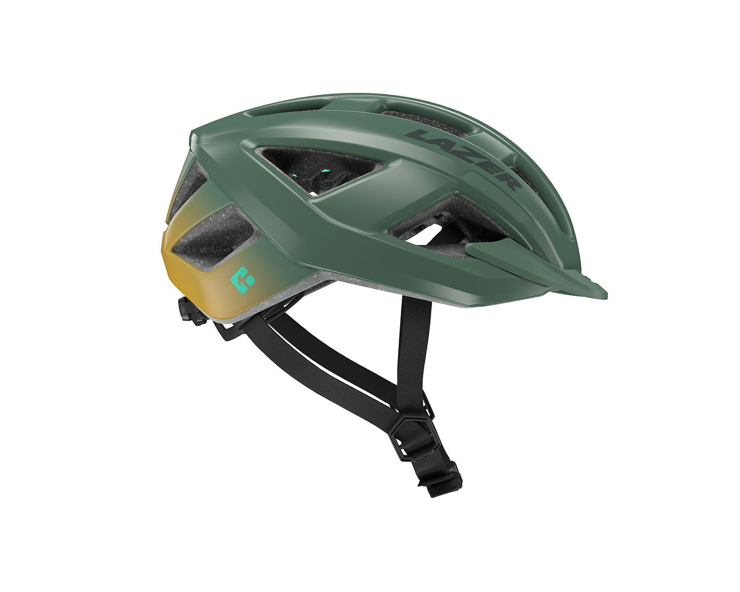 Cerro KinetiCore grün/orange – LAZERS SPORT Kategorie Topmodell – Advanced TurnSys Verstellsystem – integriertes, nicht abnehmbares Visier – Insektennetz – magnetischer Gurtverschluss – Winterkit kompatibel (seperat erhältlich) – Universal LED kompatibel (seperat erhältlich) – 270g (M)