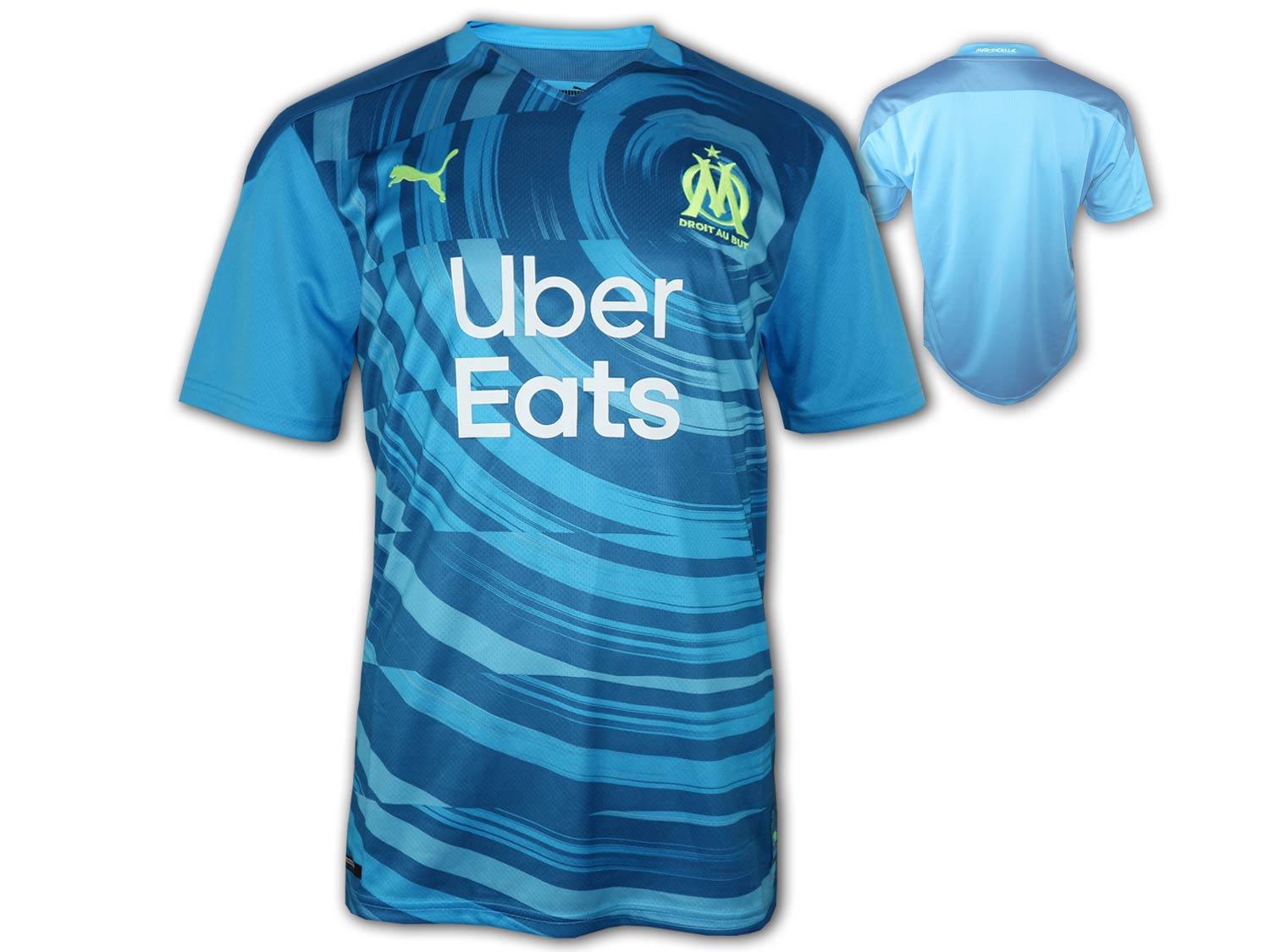 Stylisches und aktuelles Olympique Marseille Ausweichtrikot in blau zur Saison 2020/21 von Puma. OM Third Shirt des französischen Fußballklubs aus dem Süden Frankreichs, welches hochwertig mit Puma DryCell Funktionsmaterial verarbeitet ist. Das Marseille Fußball FanJersey kommt in einem frischen Design daher und es zieren ein gesticktes OM Wappen und Puma Logo die Brust, wie auch ein gedruckter Sponsorenschriftzug. Im Kragen ist der Schriftzug Marseille eingestickt. Material 100% Polyester, Farbe: BLUE AZURE / VALIARTA BLUE.
