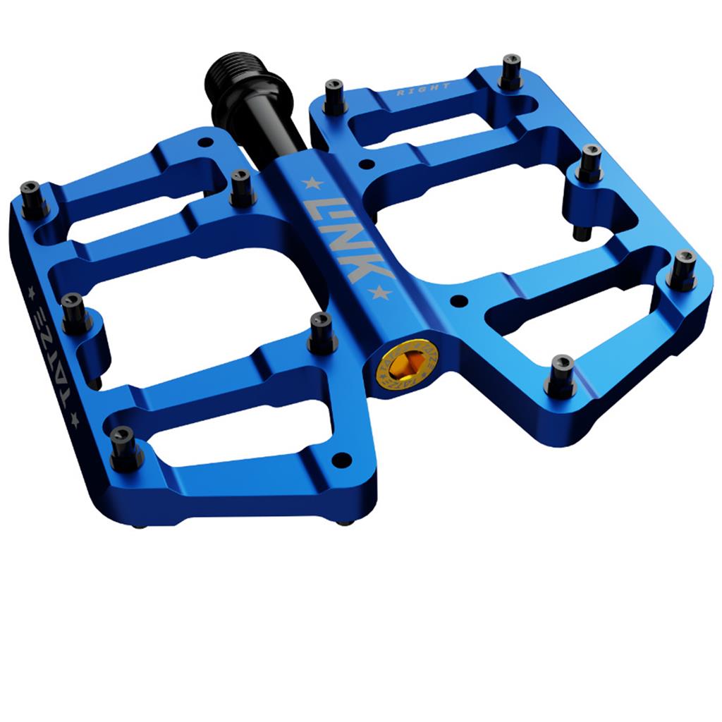 TATZE LINK TI – Ultra-flach, super leicht & Mega-Grip!Das LINK-Pedal mit Titanachse ist ein extrem dünnes Flat-Pedal. Die große Plattform mit 112cm2 (113x99mm/LxB) und 40 TATZE PINs mit gezielter Überhöhung sorgen für enormen Grip und eine gute Verbindung zwischen Pedal und Schuh. Um den Grip weiter zu erhöhen bzw. die Kontaktfläche zu maximieren, können zusätzlich 4 PINS pro Seite eingeschraubt werden. Unerwünschten Bodenkontakt vermeidet das LINK durch seine extrem dünne Bauweise, so hat der Pedalkörper an der exponierten Außenkante nur 8,8mm und damit ist das LINK eines der dünnsten Pedale auf dem Markt. Das offene Design lässt Schmutz durch das Pedal fallen und macht das Pedal mit nur 298g zum Leichtgewicht. Das LINK ist hochwertig gelagert, verbaut wird dabei ein IGUS JSM Gleitlager und 2 Kugellager. Zur Abdichtung sind 2 Doppellippendichtringe eingebaut, die die Lager vor Schmutz und Feuchtigkeit schützen. Die Lager- und Dichtungseinheit macht das Pedal nachhaltig im Sinne einer langen Lebensdauer. Zudem können Lager und Dichtungen mit dem optional erhältlichen Refresh-Kit in 5 Minuten erneuert werden, um die Uhr wieder auf 0 zu stellen. Hier die Spezifikationen auf einen Blick:- Konkave Flachseite mit 10 PINS (4 zusätzliche PINS möglich)- Große Plattform mit gezielter Überhöhung der PINS- Pedalkörper aus 6061-T6 Aluminium- Hochfeste Titanachse (für Fahrer bis 90kg freigegeben)- Lagerungen: IGUS Gleitlager und 2x Kugellager (mehrfach abgedichtet)- Gewicht: 298g- Preis: €229,-Im Lieferumfang enthalten: Pedale und Ersatzpins mit SchlüsselEntwickelt und getestet in Tirol/Österreich