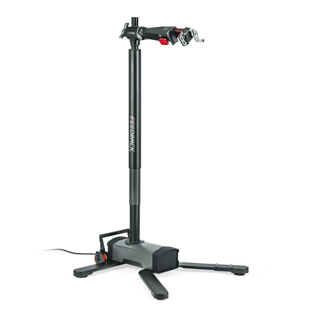 Der Pro E Lift ist der erste elektrische Montageständer für den Heimgebrauch, eignet sich aber auch für professionelle Schrauber. Der Hersteller Feedback Sport hat sein technisches Knowhow eingesetzt, um einen Lift zu konstruieren, der die Wartung besonders schwerer Fahrräder und E-Bikes erleichtert. Er kann zusammengeklappt und dadurch einfach verstaut werden und mit einem Gesamtgewicht von lediglich 25 Kilogramm ist er relativ leicht. Dennoch können Fahrräder mit einem Gewicht von bis zu 50 Kilogramm an dem Gerät befestigt und in die Höhe gehievt werden.Technische Details Feedback Sports Pro E Lift Montageständer Fußbetätigte Hubsteuerung Hubgeschwindigkeit ca. 10 cm pro Sekunde Sehr leise – weniger als 50 dB Mobile Basis mit Rädern mit nur 25 kg, leicht zu bewegen Eingebaute Kollisionserkennung Max. Tragkraft: 50 kg Maße Standfuß: 740 x 740 mm Klemmenhöhe: 837 – 1.937 mm Klemmenweite: 19 – 66 mm Maße zusammengeklappt: 740 x 740 x 850 mm Gewicht: ca. 25 kgDas abgebildete Fahrrad ist nicht im Lieferumfang enthaltenWeitere Informationen Feedback Sports Pro E Lift MontageliftDank Rollen an den Füßen kann der Montagelift einfach bewegt werden. Er ist sehr einfach zu bedienen und macht auch optisch einen soliden und futuristischen Eindruck. Die Hubvorgänge laufen mit lediglich etwa 50 Dezibel äußerst leise ab. Für den Vergleich: Ein Staubsauger für den Heimgebrauch ist im meist zwischen 75 und 85 Dezibel laut. Abgerundet wird das Ganze durch die Speed Ratchet Klemme, die Feedback Sports patentieren ließ. Sie ermöglicht es, die Zweiräder rasch und sicher festzuklemmen und kann ebenso schnell wieder geöffnet werden.