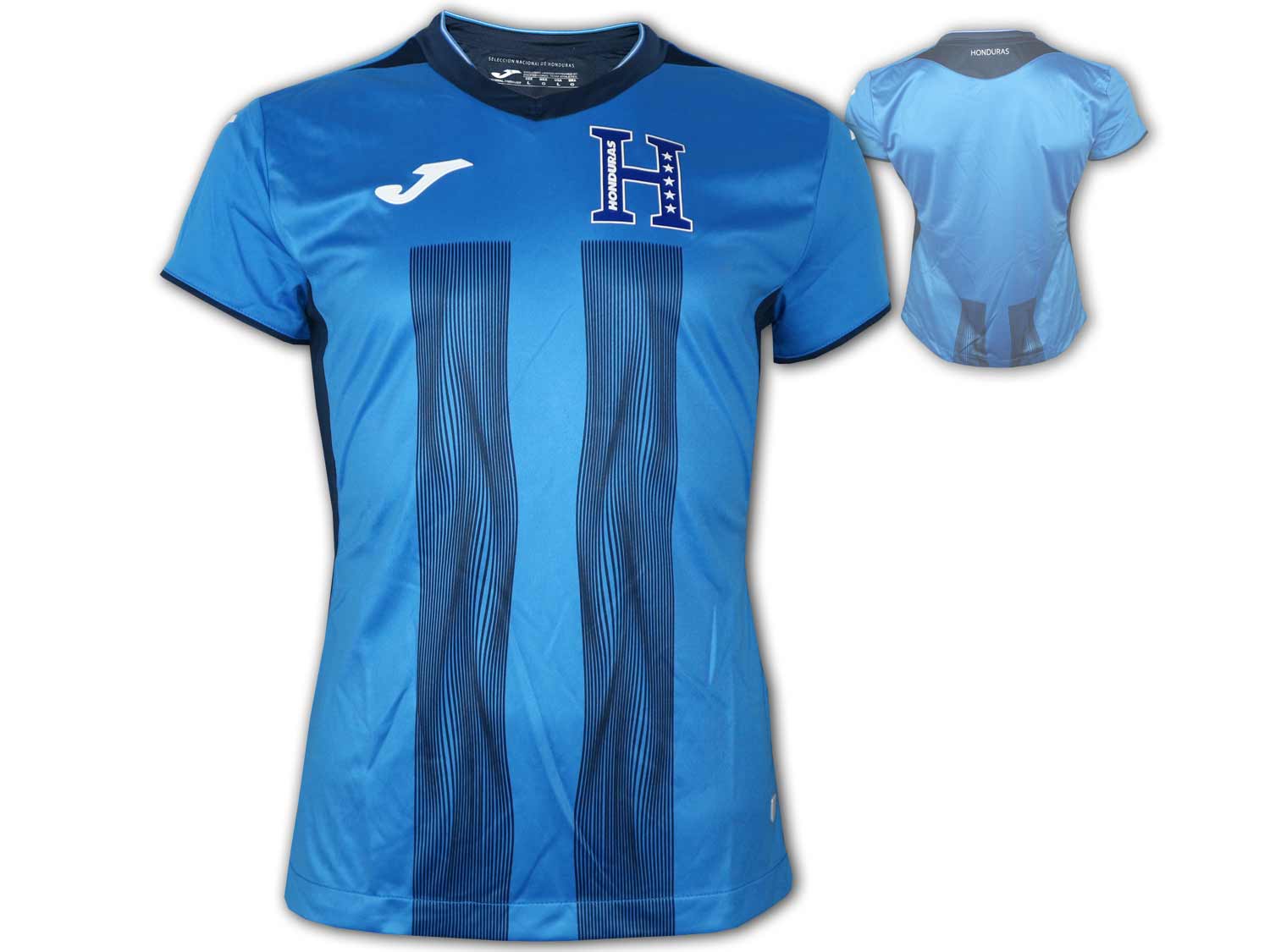 Funktionelles und stylisches Joma Honduras Trikot für Damen in blau. Dieses 3rd Shirt der Fußball Nationalmannschaft von Honduras ist mit Funktionsmaterial ausgestattet, welches für einen erhöhten Feuchtigkeitstransport und zur Temperaturregulierung dient. Dieses Damen Fußball-Jersey der honduranischen Nationalmannschaft ist anatomisch geschnitten und als weiblicher Fan der Los Catrachos macht man damit bestimmt immer eine gute Figur! Material: 100 % Polyester. Farbe: BLUE / BLACK.