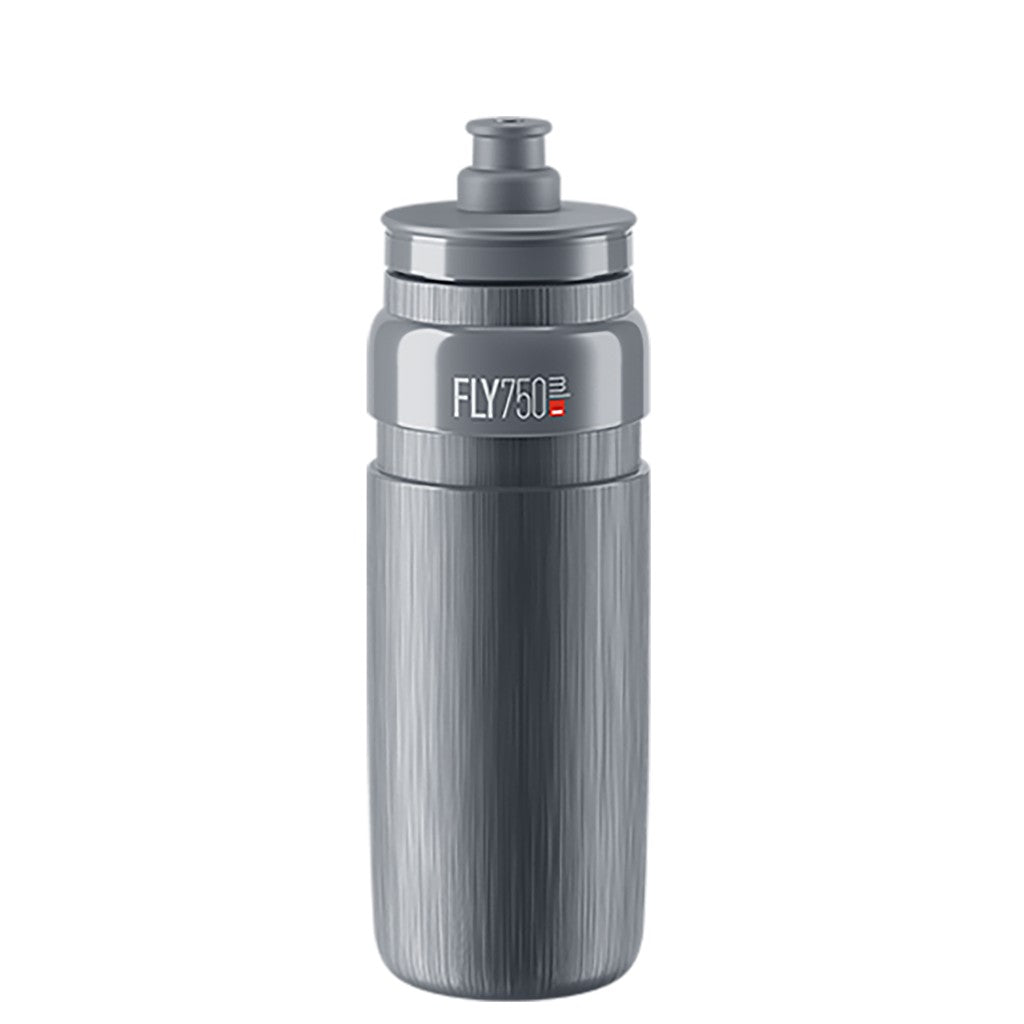 Fly Tex Elite 750ml grau Die Fly Tex von Elite ist aufgrund ihrer unglaublichen Leichtigkeit die von WorldTour-Champions am meist verwendete Trinkflasche. Die Bike-Trinkflasche par eXCellenceIhr Rekordgewicht von nur 51 Gramm (550ml) ist der unterschiedlichen Stärke zu verdanken. Aus quetsch- und geruchlosem Material gefertigt, verfügt sie über ein Ventil mit Hochversorgungs-Technologie, um im Rennen problemlos zu trinken.