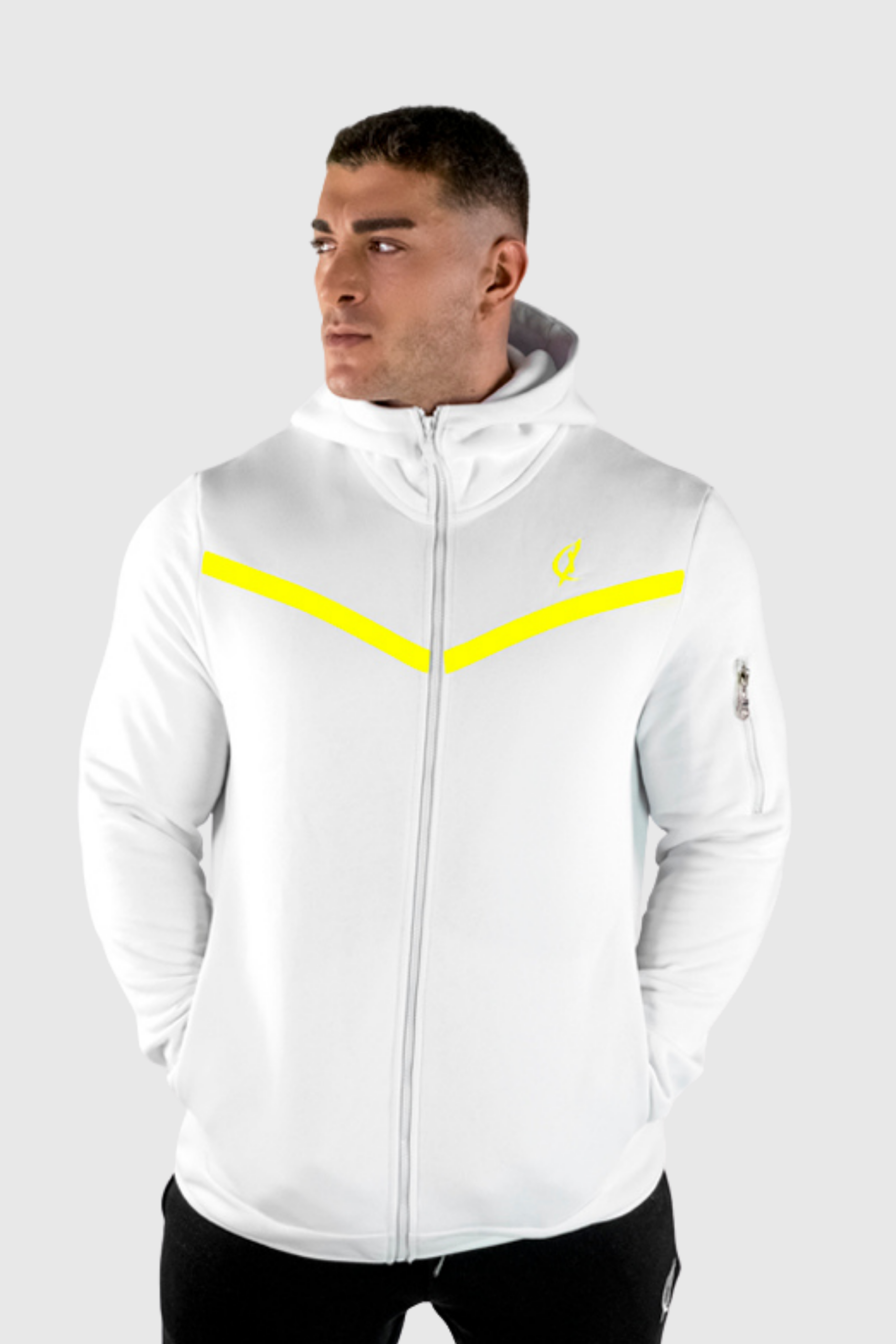Der Zip-Reißverschluss lässt dir die Wahl, ob du den Legacy Hoodie offen oder geschlossen hältst. Eine zusätzliche Tasche auf Höhe des rechten Oberarms eignet sich ideal, um deine Gym-Mitgliedkarte zu verstauen.