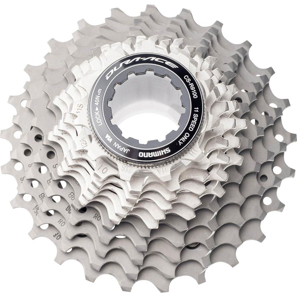 Kassettenkranz D-Ace 11f.11-25 – Gruppe: DURA-ACE – Modell: CS-R9100 – Typ: Hyperglide-EV – Schaltstufen hinten: 11 – Kompatible Kette: Linkglide,11-fach HG – Abstufung: 11-12-13-14-15-16-17-19-21-23-25 Zähne – Freilauftyp: HG-Verzahnung L – Gewicht: 175g