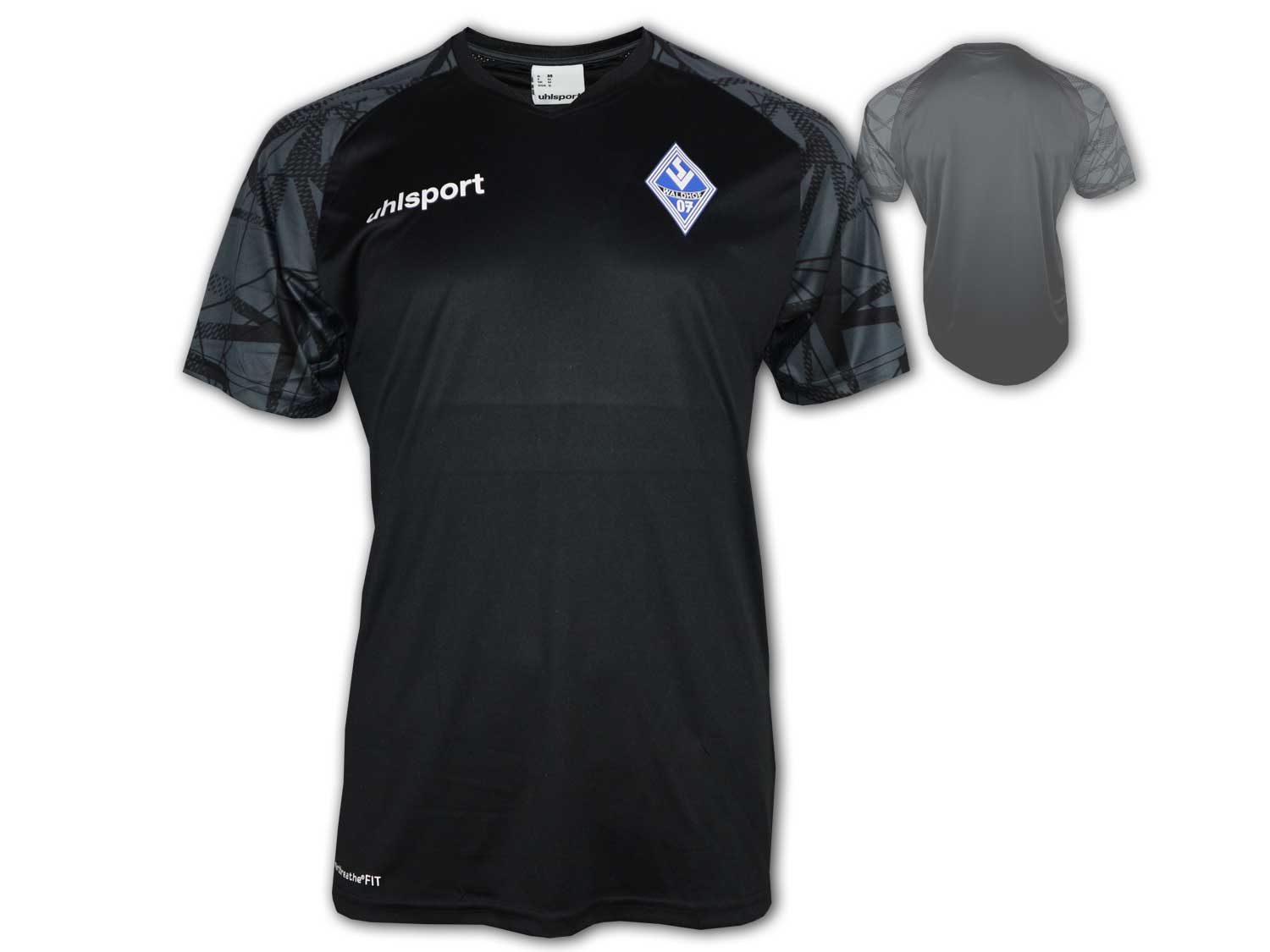 Aktuelles und hochwertiges Waldhof Mannheim Trainingsshirt in schwarz zur Saison 2023 24 von Uhlsport. SVW Fan Jersey des deutschen Fußballvereins aus Mannheim, auch die Waldhof Buben genannt, welches hochwertig mit smartbreatheFit Funktionsmaterial verarbeitet ist. Das Mannheim Fußballtrikot im angenehmen Tragekomfort zieren ein aufgedruckter uhlsport Schriftzug, sowie ein Waldhof Wappen auf der Brust. Material: 100% Polyester; Farbe: BLACK / ANTHRACITE.