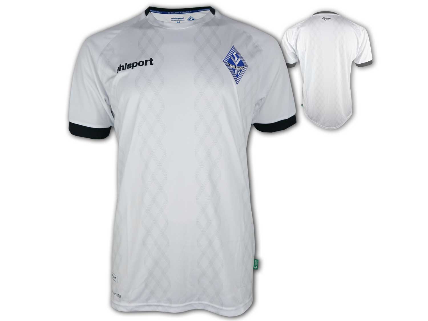 Funktionelles SV Waldhof Mannheim Trikot weiß zu den Auswärtsspielen der Saison 2023/24 von Uhlsport. SVW Away Jersey des Traditionsklubs aus Mannheim, welches hochwertig verarbeitet und anatomischen geschnitten ist. Das Mannheim Fußballtrikot und FanShirt verfügt über smartbreathe Lite einem atmungsaktiven Funktionsmaterial, welches für einen erhöhten Feuchtigkeitstransport und besseren Temperaturregulierung dient. Aufgesticktes uhlsport Logo, sowie aufgenähtes Waldhof Wappen zieren die Brust. Material: 100% Polyester; Farbe: WHITE / BLACK.